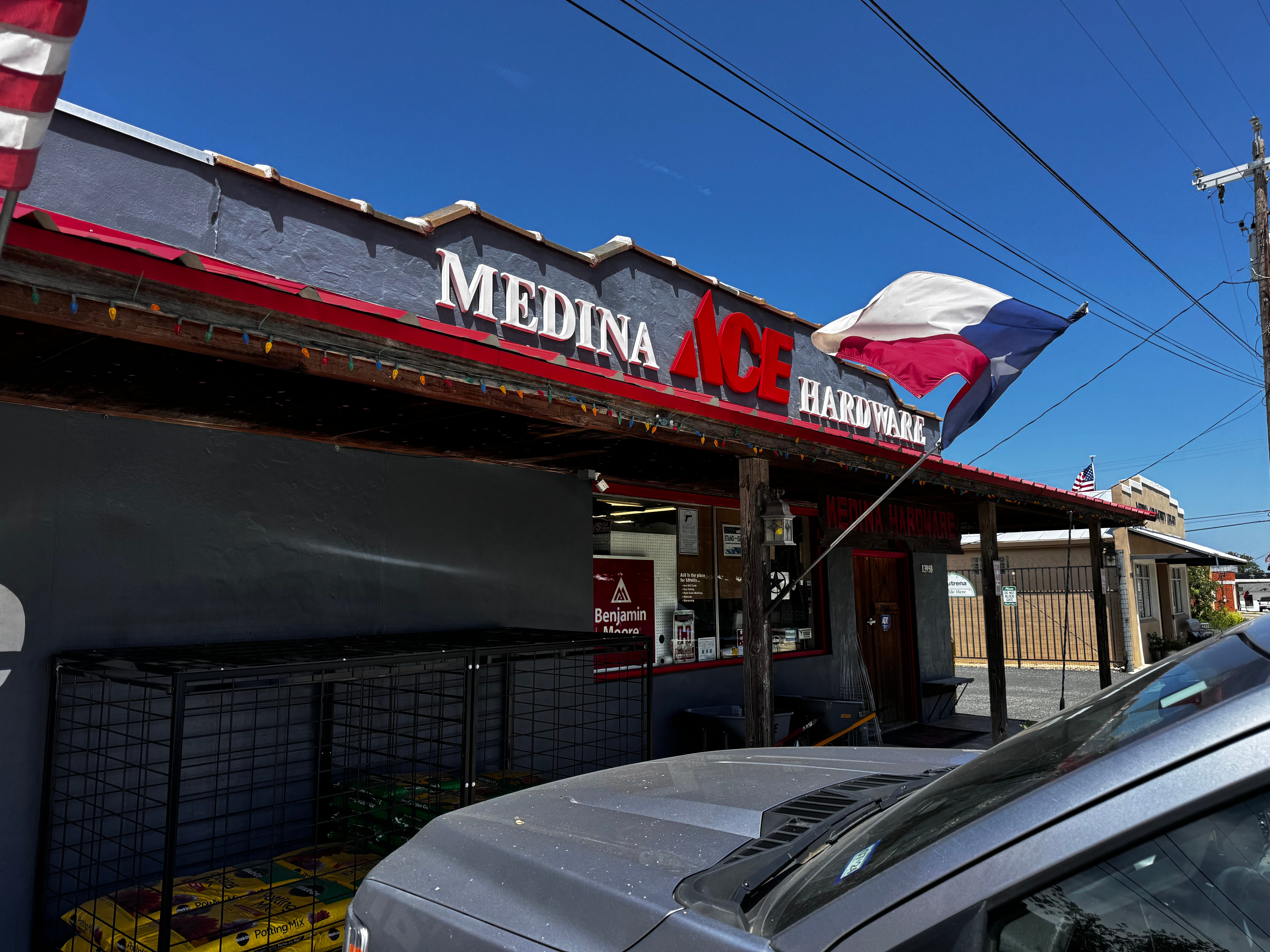 Pictured above is my hands-down favorite ACE Hardware store, anywhere. This store is in Medina, Texas, on Texas State Highway 16 near our ranch. It has been open for business for over 80 years, and is now owned by locals Andy and Patty Lautzenheiser. Open the old wooden front door, and you step inside a cramped, meticulously-cleaned and organized store, complete with squeaky wood floors, narrow aisles meant for humans (not fork lifts), and shelves filled floor to near-ceiling with anything you might want or need.