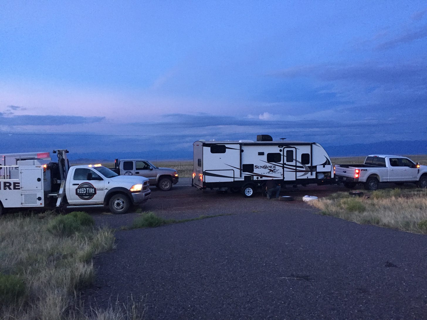 One of my favorite family vacation photos is this one, of everyone on the side of a New Mexico highway, reading, talking, and playing … making lemonade out of lemons. All of this was enabled by Reed Tire, and especially Brad and Mitch, who were working feverishly off camera, doing what they do, providing extraordinary customer service.